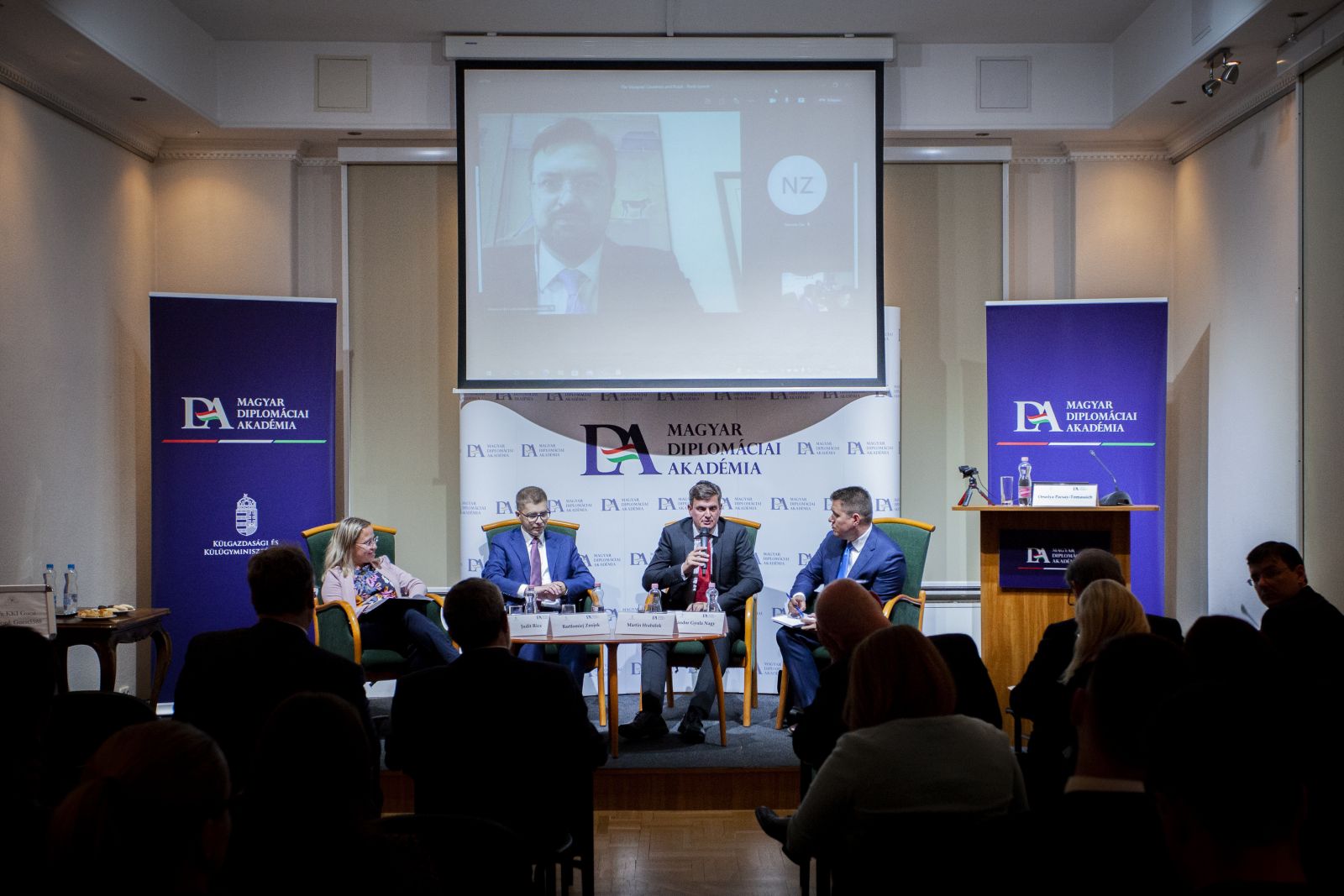 Maurício da Costa Carvalho Bernardes (diplomata, 2013 és 2017 között a brazil Külügyminisztérium Kelet-közép-európai kapcsolatokért felelős főosztályvezetője) kiemelte, hogy a V4 országokkal ápolt kapcsolatok egyre fontosabbak Brazília számára. Martin Hrabálek (a brünni Mendel Egyetem Regionális Fejlődés és Nemzetközi Tanulmányok Karának adjunktusa); Nagy Sándor Gyula (a Budapesti Corvinus Egyetem docense, a Magyar Diplomáciai Akadémia szakmai főtanácsadója) és Bartłomiej Znojek (a Lengyel Nemzetközi Kapcsolatok Intézet (PISM) Latin-Amerika elemzője) a két fél közötti együttműködés részleteiről beszéltek, kiemelve többek között a kiváló tudományos és oktatási kapcsolatokat, illetve sürgetve a MERCOSUR és az Európai Unió közötti kereskedelmi akadályok leküzdését, valamint kitértek a védelmi és politikai együttműködések fontosságára. Az esemény moderátora Ricz Judit (az ELKH Közgazdaság- és Regionális Tudományi Kutatóközpont Világgazdasági Intézet tudományos munkatársa, a Budapesti Corvinus Egyetem docense) volt.
